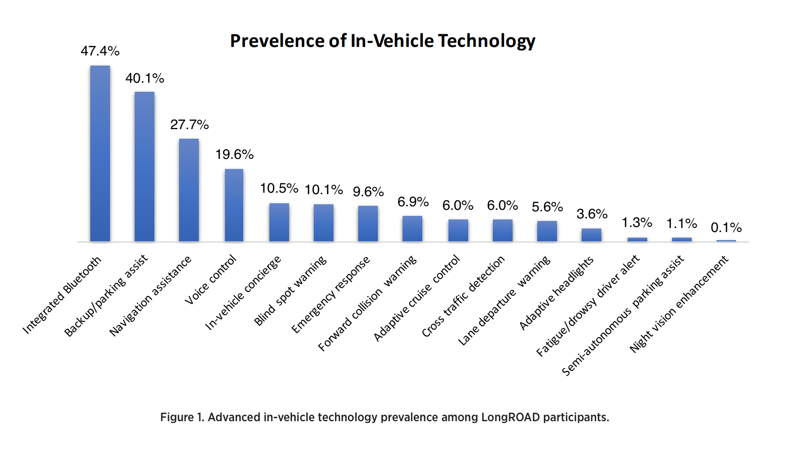Analysis reported in this work found that advanced in-vehicle technologies were present in nearly 60% of vehicles driven by LongROAD study participants. Given that prevalence was greater among those with higher income levels, we expect that the prevalence of in-vehicle technologies among older drivers will increase in the future as more of these technologies become standard on new vehicles.